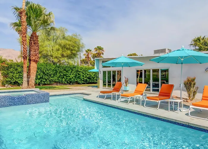 Papillon Palm Springs By Acme House Company Vila dispõe de cozinha equipada com máquina de café/chá, refrigerador e forno. Servindo pratos da cozinha Amerikaanse, Café Palmetto está situado a apenas 1.6 km de distância. O aeroporto em Palm Springs International está situado a 5 km, enquanto a estação estação de autocarros Palm Cyn at Via Escuela fica a uma pequena distância da acomodação.